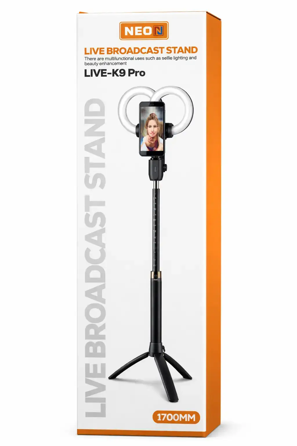 NEON – Perche selfie trépied avec anneaux lumineux Live-K9 Pro 1700 mm